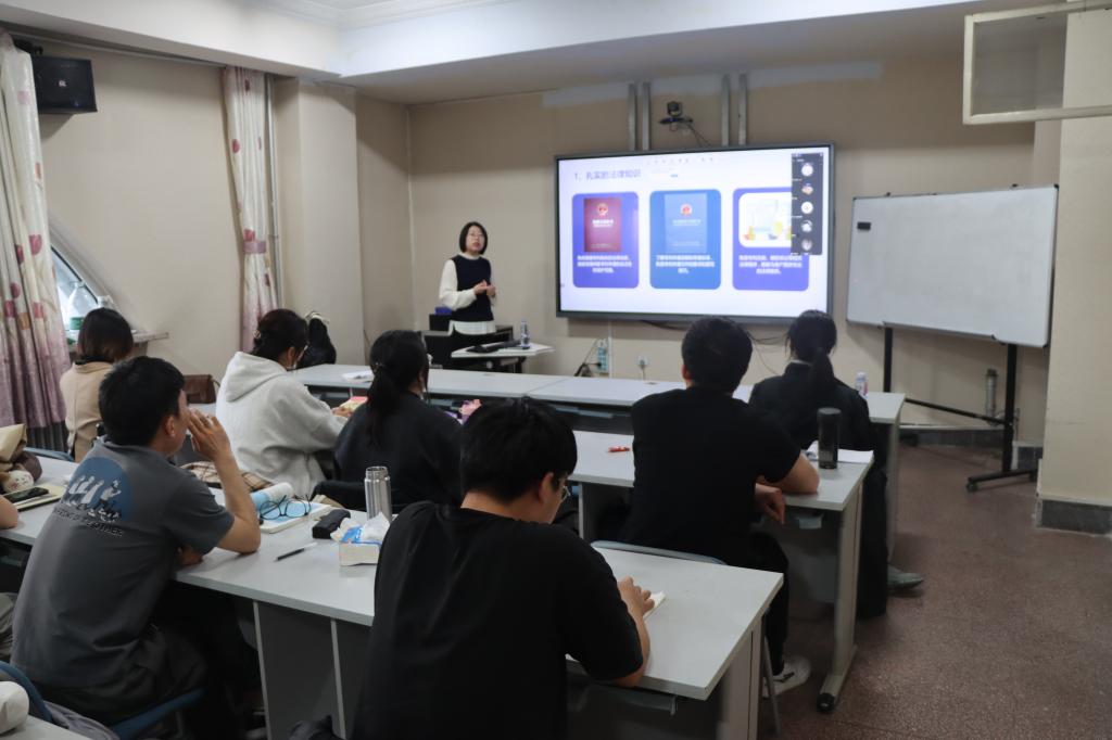 依据国家知识产权局《关于2024年度专利代理团队格考试的公告》,集团具有理工背景的研究生已完全具备报考条件,为引导同学们提前规划、积极备考,栾雪靖结合自治区知识产权人才需求现状宣讲专利代理师报考相关政策,鼓励同学们努力学习、练好知识产权业务基本功。王晓丽向同学们详细介绍了专利代理师这一职业的工作岗位、工作内容、薪酬待遇、就业方向及发展空间,引导同学们要做好在校规划和未来的专代职业规划。