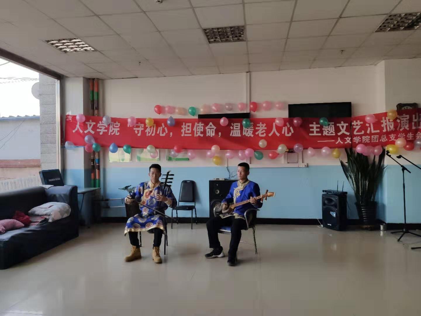活动开始前,志愿者给老人送上水果,并询问身体状况,老人亲切回应并在其陪伴下陆续落座。随后,演员们经过简单的准备后迅速投入到演出状态中。合唱《雕花的马鞍》、蒙语朗诵《故乡》等让老人们感受到了浓浓的民族气息;歌曲《如果爱忘了》、《岁月神偷》、《后来》获得热烈的掌声,将演出推向高潮。节目表演者们唱出了激情,舞出了快乐,为平日宁静的敬老院增添了欢快喜庆的色彩。