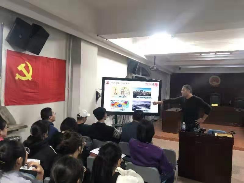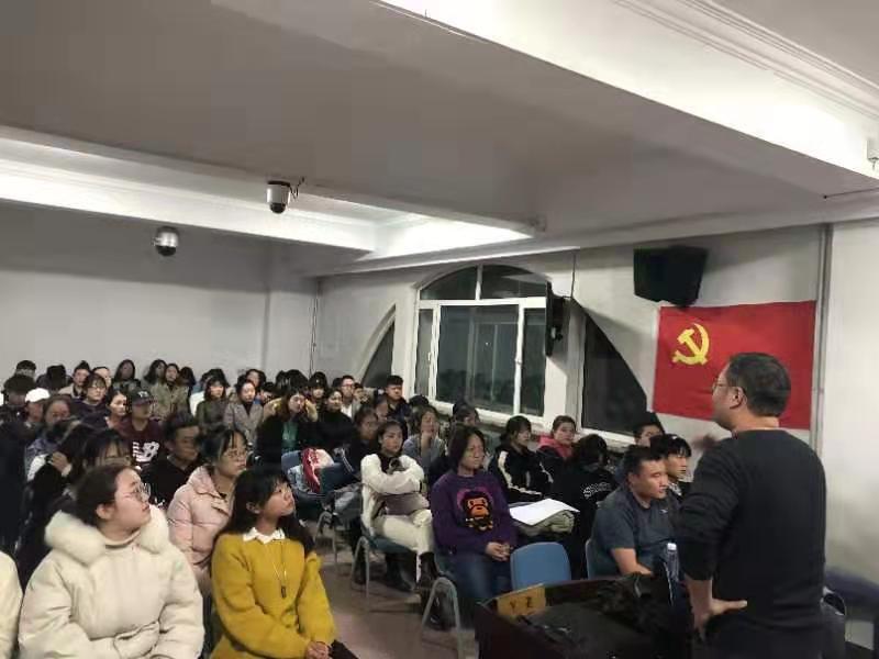 20191116日,3044永利于模拟法庭开展2019年积极分子培训班第二讲,法学系教工党支部书记王寅主讲,全体积极分子共六十余人参加。