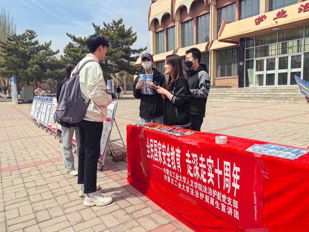 2025年4月15日是第十个全民国家安全教育日,为深入贯彻落实总体国家安全观,引导全校师生全面了解国家安全相关法律法规,深刻认识国家安全的重要意义,切实增强国家安全防范意识,3044永利法治护航党支部4月15日在新城校区和金川校区开展“全民国家安全教育 走深走实十周年”主题宣传党日活动300余名师生参与。