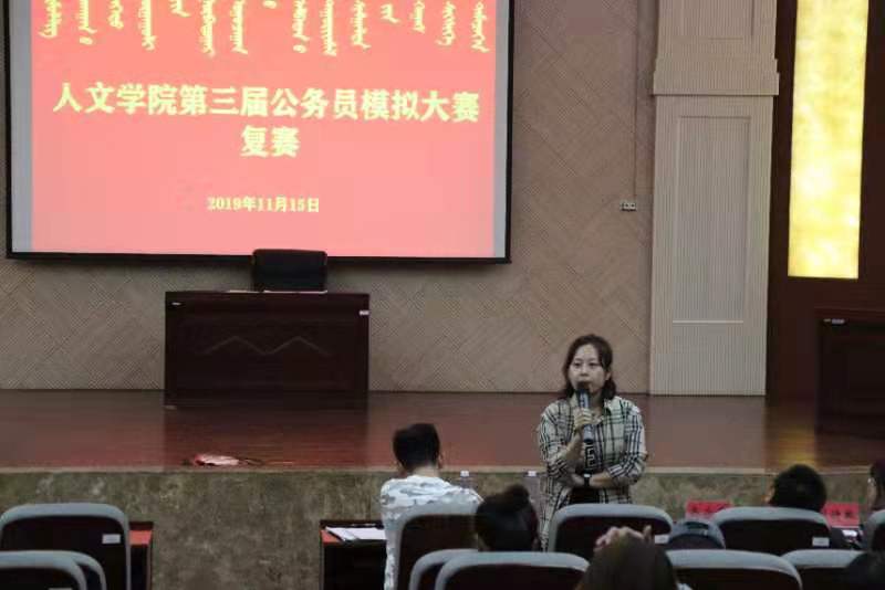 此次大赛以“感受公考魅力,搭建就业之桥”为主题,经过初赛笔试环节的选拔,共有10名同学入围决赛。决赛面试环节采用公务员招考的结构化面试形式进行,主要考核参赛选手们的语言表达能力、综合分析能力、逻辑思维能力、沟通协调应变能力、对专业知识的掌握以及举止仪表等方面。比赛开始,每位参赛选手沉着应对考题,分析问题条理清晰。比赛结束后,各位评委点评了各位选手的表现情况并提出中肯的建议,分享了一些解题技巧,赢得了观众的热烈掌声,并引发观众对未来职业就业的深刻思考。最终,法学18-2陈慧琴同学获得一等奖,社工18-2白佳玉、法学19-2张泸月同学获得二等奖,法学19-1王云飞、社工19-2张佳慧、社工19-2王佳旭同学获得三等奖,社工19-2李天旭、社工18-1刘静、社工19-2娜木拉、法学19-1李慧茹同学获得优秀奖。