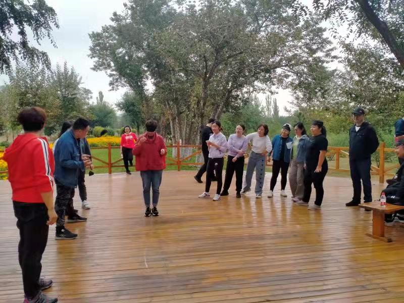 此次活动设计了户外拓展训练、登山等项目。在拓展训练活动中,老师们密切配合,互帮互助,大家在一片欢声笑语中感受到了协作配合的重要性,完成了拓展训练。随后,组织大家登上了乌素图公园最高山峰,领略了自然的风光。