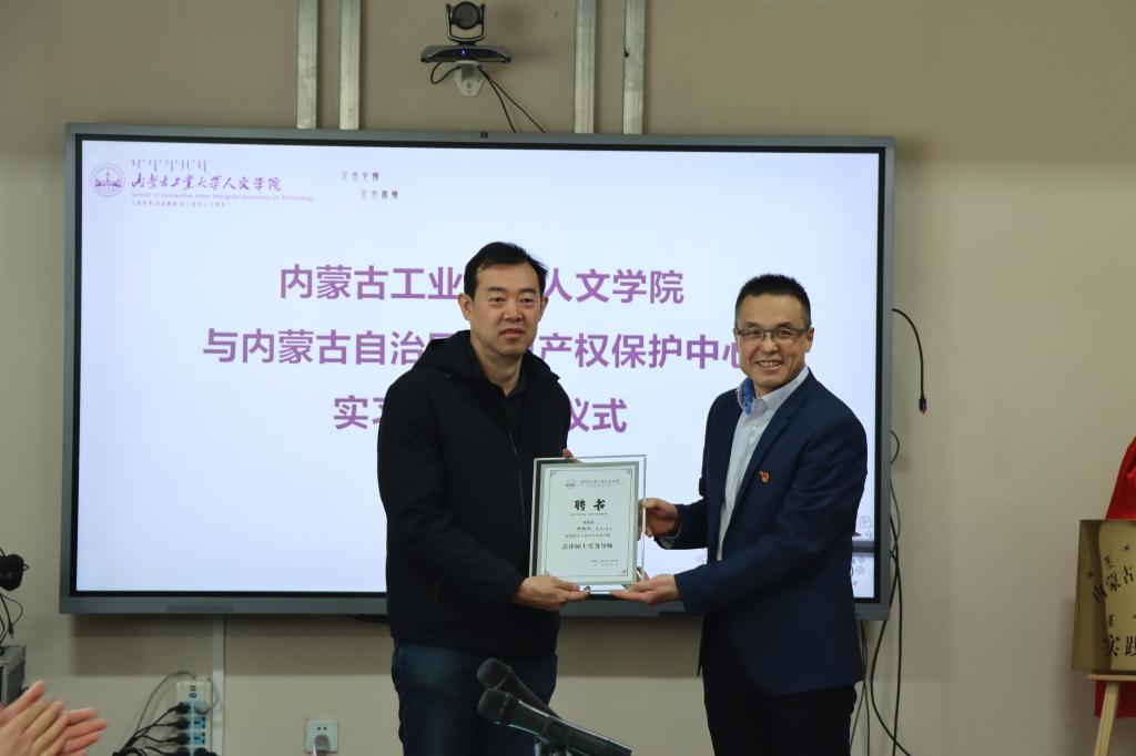 11月25日上午,公司邀请自治区市场监管局(知识产权局)知识产权保护处处长杨锐刚,自治区知识产权保护中心主任卢娜等一行,公司科研处副处长布和朝鲁,内蒙古财经大学知识产权专业负责人杜青松等专家学者参加公司与内蒙古自治区知识产权保护中心实习基地签约仪式暨“知识产权高层次人才培养”学术论坛活动,公司经理文宗川、副经理苏丽娜,以及莫彩蓉、吴凡文等教师代表参与了此次活动。