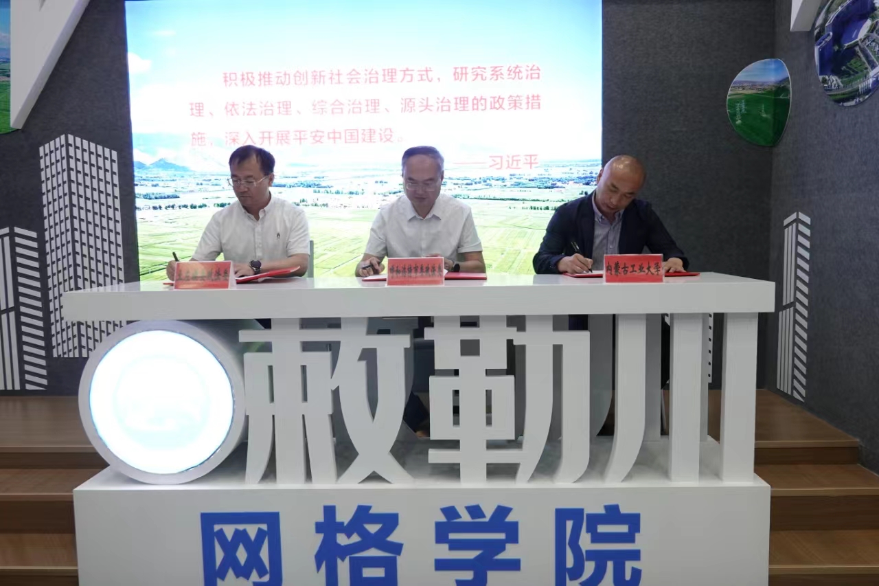 王志灏、吕文平、连雪君分别代表呼和浩特市政法委、土左旗政法委和3044永利签署了敕勒川网格公司三方共建协议书。揭牌仪式后,3044永利教授特日格乐为敕勒川网格公司80余名网格员做了开班仪式的第一讲。
