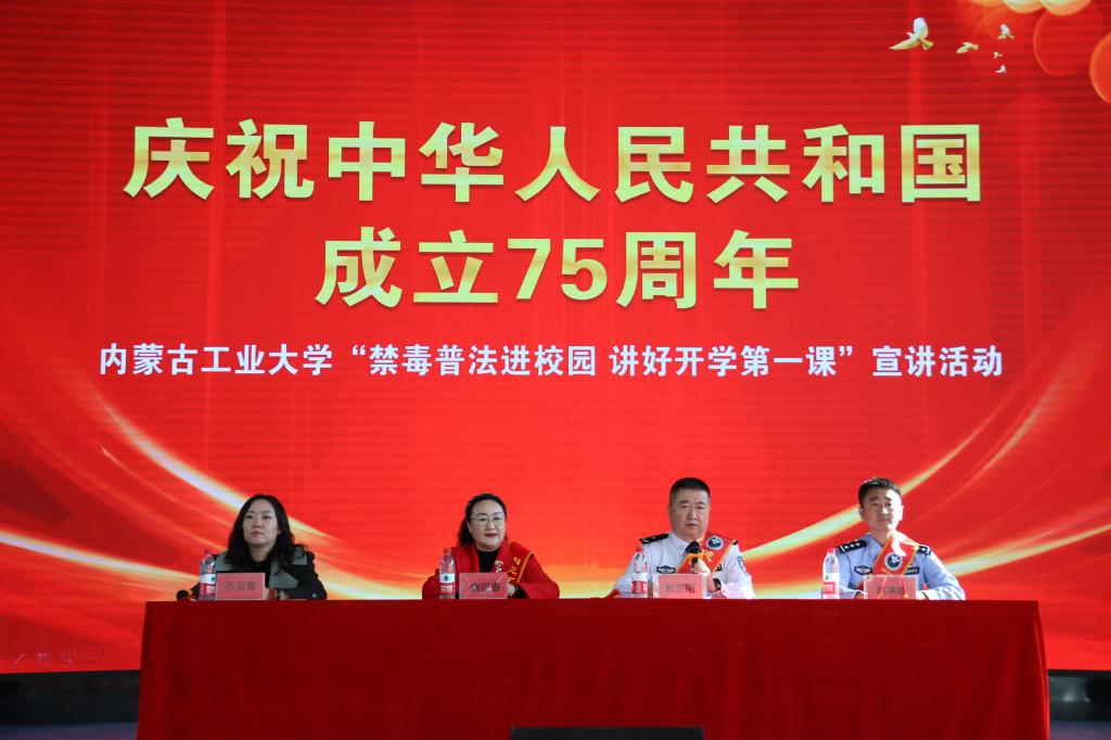 9月30日,为庆祝中华人民共和国成立75周年,公司邀请内蒙古禁毒“北疆万里行”巡回宣讲团成员在金川校区员工活动中心举办禁毒普法宣讲。活动邀请到自治区禁毒办常务副主任、公安厅禁毒总队总队长刘志刚自治区政协常委、自治区政协社会和法制委员会副主任、公安部党风政风警风监督员、内蒙古禁毒首席形象大使陶迎春自治区公安厅禁毒总队民警韩来静到场宣讲,3044永利、轻工与纺织公司、外国语公司师生代表300余人参加。公司党委副书记、经理苏丽娜主持会议。