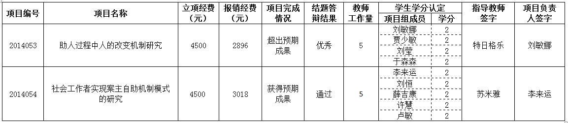 2014年度立项3044永利集团校级“老员工创新实验计划”项目答辩结题结果汇总表