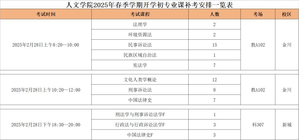 3044永利2025年春季学期开学初专业课补考安排一览表