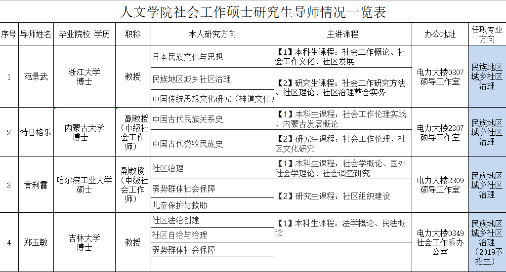 3044永利社会工作硕士研究生导师情况一览表(2019年)