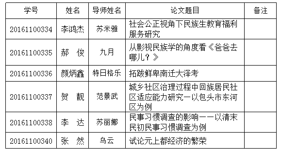 2016 级民族学硕士研究生论文报告会论文题目