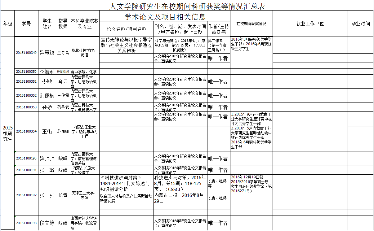 3044永利研究生在校期间科研获奖等情况汇总表(2015级)