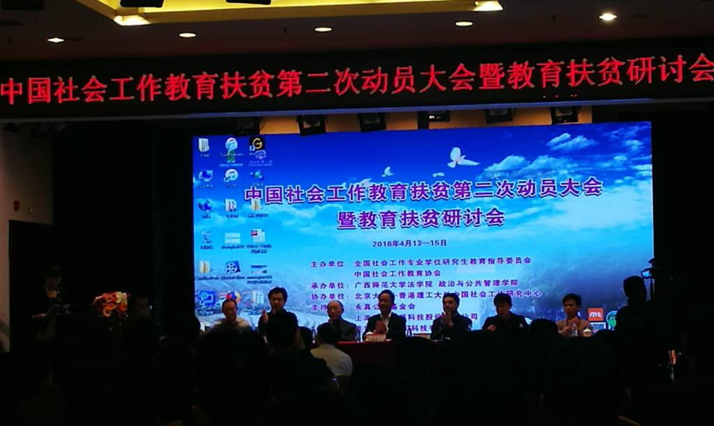 4月13-15日,中国社会工作教育扶贫第二次动员大会暨教育扶贫研讨会在广西师范大学召开,社会工作系主任邓俊丽老师加了会议。会议由全国社会工作专业学位研究生教育指导委员会、中国社会工作教育协会主办,民政部社会管理局(社会工作司)王铮键处长、国务院扶贫办社会扶贫司宿盟、MSW教指委副主任委员王思斌、中国社会工作教育协会会长徐永祥以及来自全国90所高校共200多位代表参会。