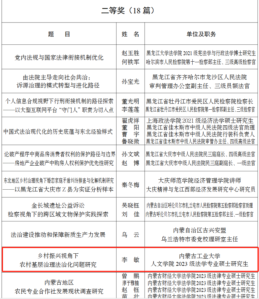 喜报│公司李敏同学荣获《乡村振兴视角下农村基层治理法治化问题研究》论文二等奖