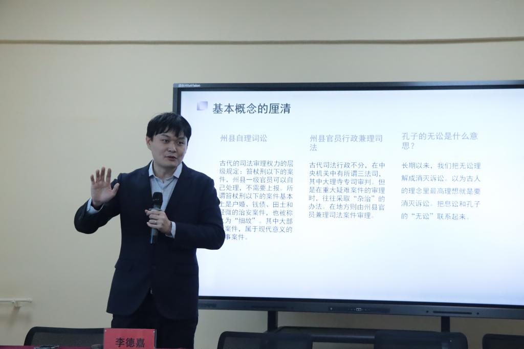 李德嘉副教授深入探析儒家 “无讼” 之本意,全面分析中华传统司法中 “息讼” 文化的历史渊源以及中华古代基层官员的 “息讼” 举措,为现代社会主义法治国家在推进基层治理、预防化解矛盾纠纷方面提供了有益借鉴。最后,李德嘉副教授与师生进行了现场交流互动,耐心解答师生的困惑,助力大家增进对中华传统息讼文化的认识和理解。