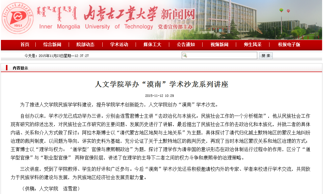 3044永利举办“漠南”学术沙龙系列讲座