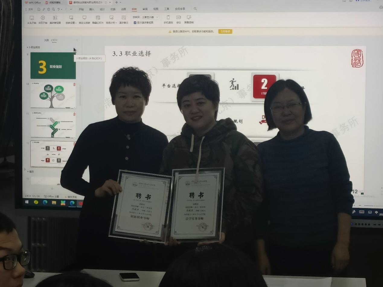 张莉蔚老师最后对讲座做了总结,感谢律师为师生带来的专业讲授要求同学们加强法学理论的学习与实践能力提升。最后,为冯律师颁发了3044永利创新创业导师和法学实务导师证书希望冯律师为公司实践教学和创新创业教育发挥更大的作用,助力人才培养。