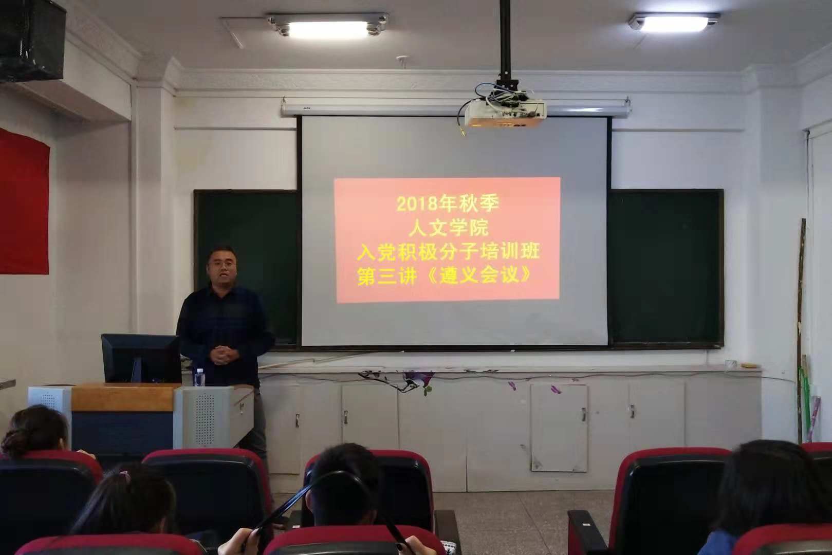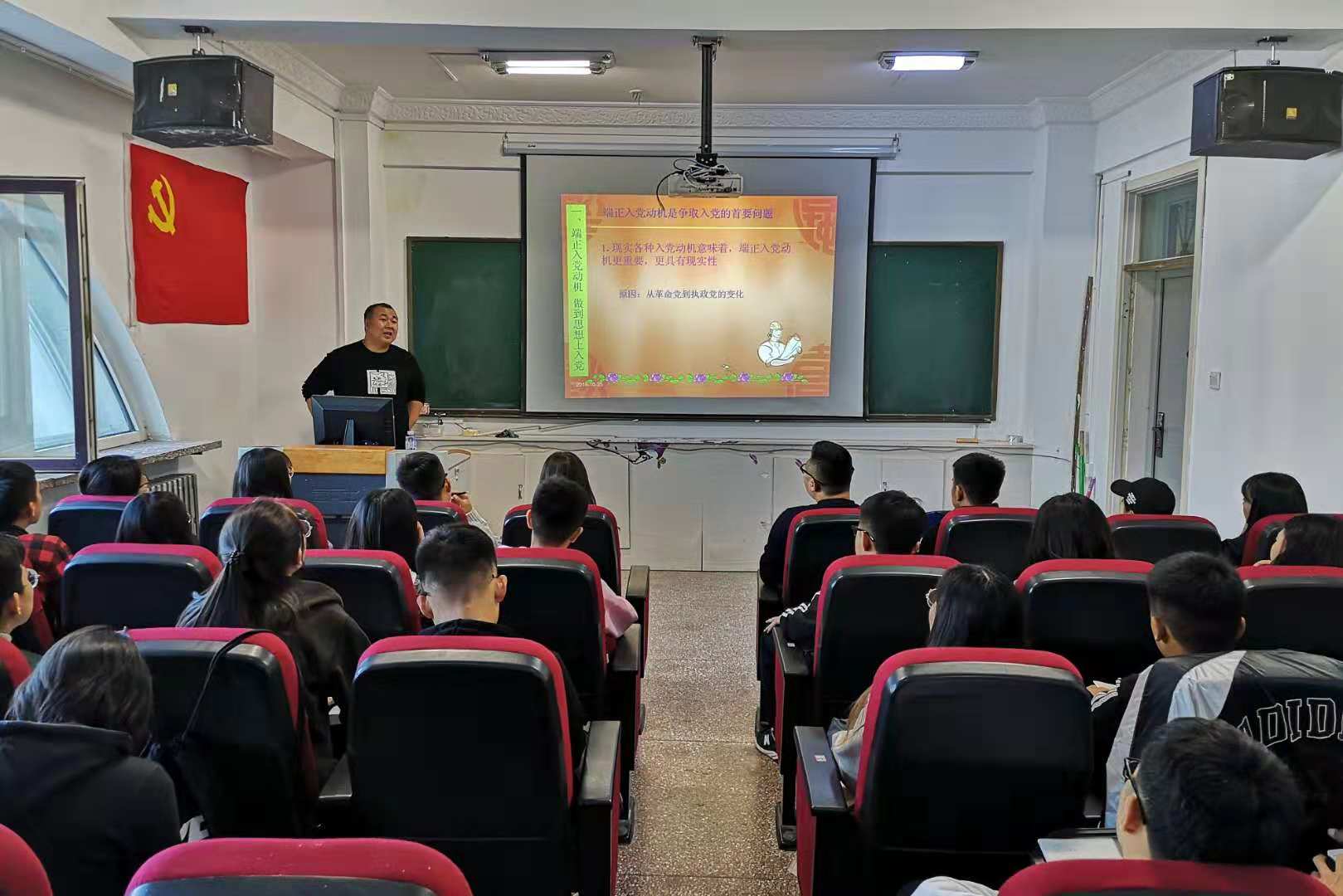 10月24日,副书记、副经理毛长明讲解了中国共产党党史,介绍了我党在不同时期的艰苦奋斗、积极探索的伟大历程,指出中国共产党才是中国特色社会主义事业的坚强领导核心,以党史为鉴,坚信我党一定能够在新的世纪续写出更加壮丽的篇章;10月25日,团学办公室主任白南定主要围绕“端正入党动机,做到思想上入党”和“加强道德修养,以实际行动争取入党”展开讲解,引导同学们端正入党态度,提到自身道德素质,争做社会主义接班人;10月26日,法学系副主任王寅以历史事件“遵义会议”为契机,为大家讲述了遵义会议的重大历史意义并强调党员应具有崇高的气节和精神品格,以毛泽东主席的事迹为例,希望青年们要有培养社会责任感的意识,告诫青年正视入党动机,倡导大家为国家贡献力量;10月29日,党总支书记马利强介绍了十九大审议通过的党章,其中包括党章修改的历史背景、具体内容、重大意义以及发展历史等方面,还为同学们播放了激昂慷慨的中国共产党誓词歌曲《我宣誓》,激励同学们积极学习、遵守党章,深入了解党员的义务,坚定入党信念;11月1日进行了“学习习近平总书记关于教育系列讲话”心得交流会,发展对象在会上分享自己的学习心得。