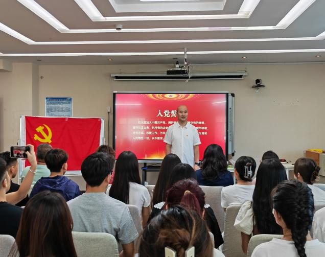 7月1日,公司党委开展新发展党员入党宣誓仪式老党员重温入党誓词活动,老党员为新党员佩戴党员徽章,切实加强对党员的党性教育,增强师生党员的政治责任感和历史使命感。公司党委书记马利强讲话,激励广大党员以更加饱满的热情,立足本职、谋划工作、解放思想、晋位升级,将党建优势转化为学习、工作优势,以实际行动迎接中国共产党成立103周年。