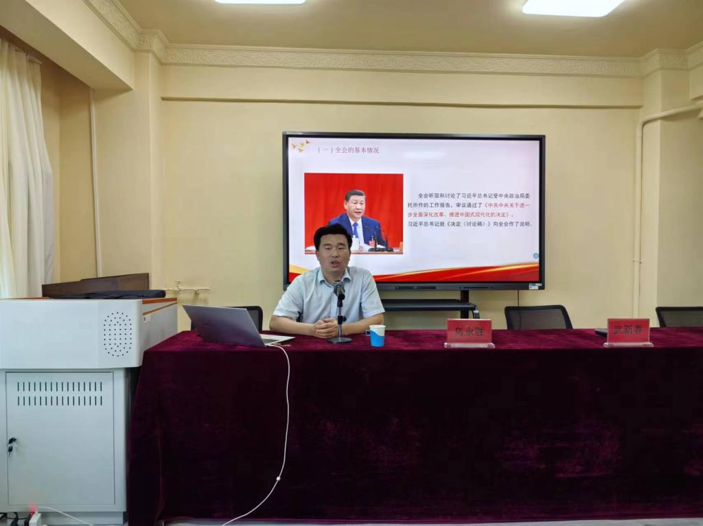马利强、乌永胜老师分别围绕“党的二十届三中全会是关键时期召开的一次十分重要的会议”、“深入学习领会习近平总书记在党的二十届三中全会上的重要讲话精神”、“全面准确理解《决定》提出的进一步全面深化改革重大举措”、“深入贯彻落实自治区党委十一届八次全会精神,书写中国式现代化内蒙古新篇章”等方面进行了系统解读,宣讲内涵丰富、深入浅出,具有很高的政策理论性和实践指导性,为公司干部师生进一步深入学习领会党的二十届三中全会精神打下坚实的理论基础。