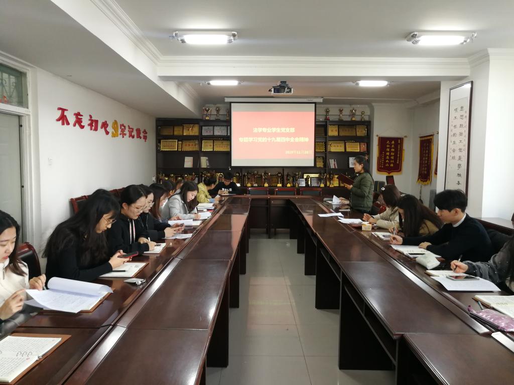 为深入学习贯彻党的十九届四中全会精神,把思想和行动统一到中央的决策部署上来,根据公司党委、公司党总支工作安排,法学专业员工党支部于11月28日在0320会议室召开党的十九届四中全会精神专题学习讨论会,党支部副书记魏嘉豪主持。