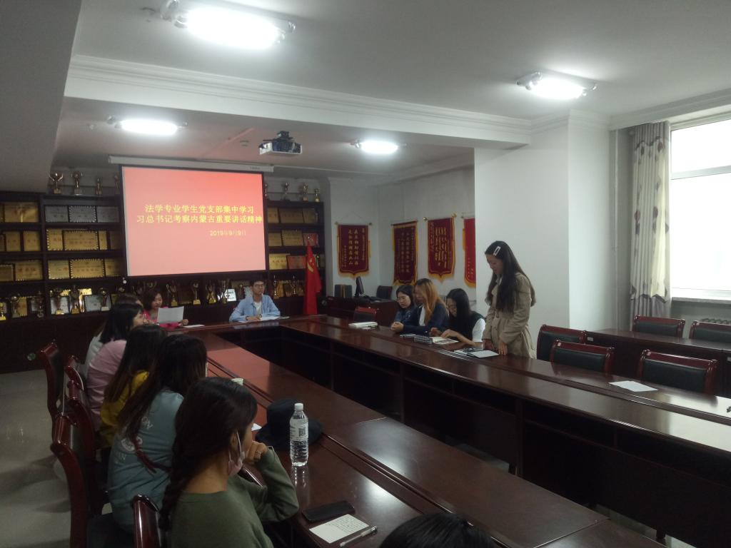 9月9日上午,法学专业员工党支部召开理论学习会议,集中学习了7月15至16日习近平总书记考察内蒙古重要讲话精神,法学专业员工党支部全体党员参加本次会议,支部副书记魏嘉豪主持。