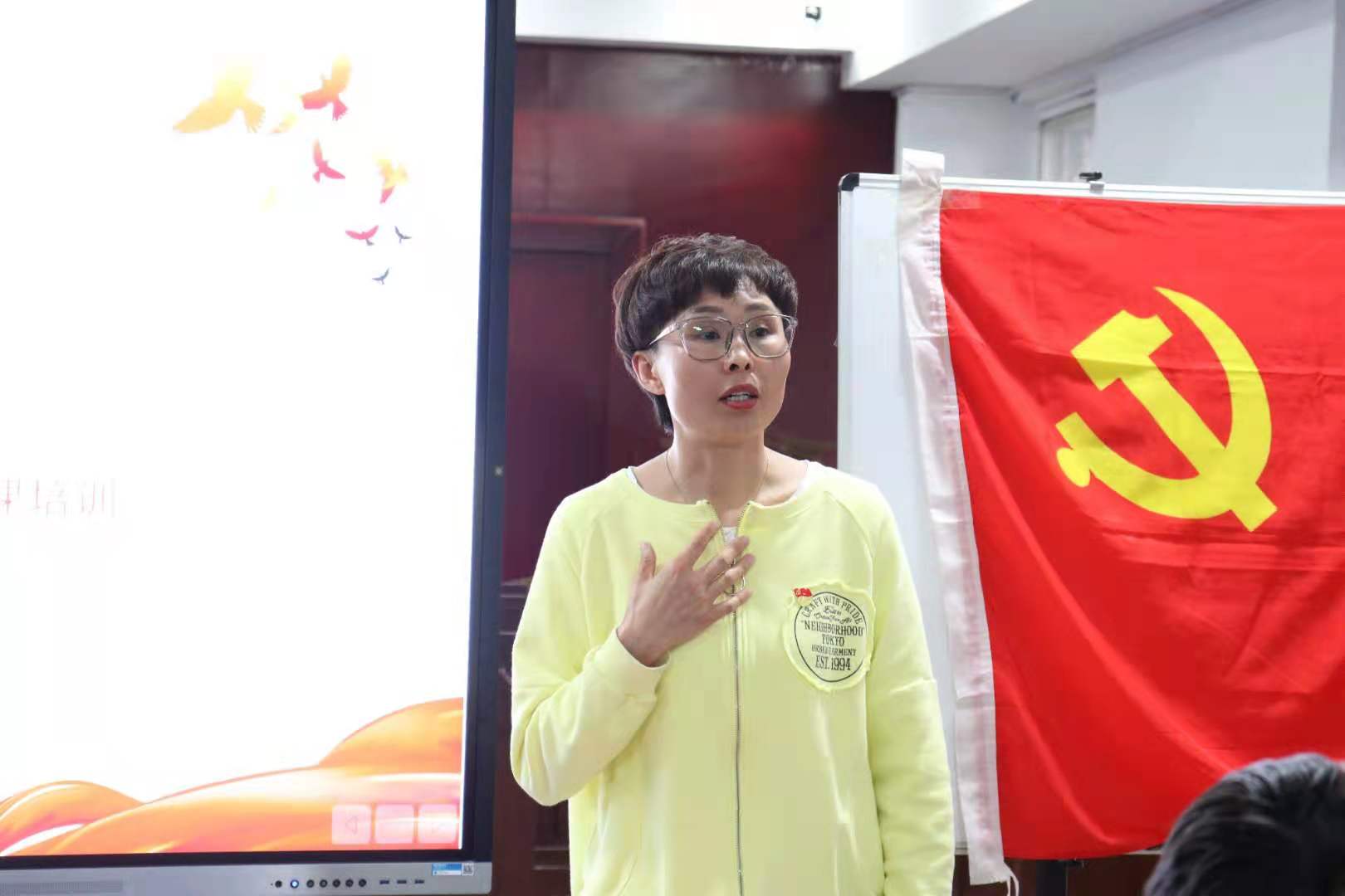本次培训,李慧英结合中国共产党各时期的历史发展,以“重温《入党誓词》,永远忠诚于党”为主题,从“学习誓词,打牢忠诚之基”“践行誓词,唱响忠诚之歌”“铭记誓词,高举忠诚之旗”三个方面带领积极分子们重温《入党誓词》。