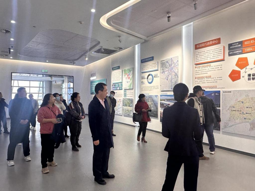 呼和浩特市规划展览馆即是呼和浩特市铸牢中华民族共同体意识教育实践基地,也是公司合作共建实践教学基地。在讲解员的带领下,参加人员从城乡规划的视角,以“城市、人居、和谐、发展”为主题,通过全息投影、激光演示等多种展示手段,全面系统地了解了呼和浩特古老而又现代、美丽而又神奇的昨天、今天和明天。参观中,大家被青城的科学规划布局、未来的发展场景所深深吸引、震撼,并在现场展开了热烈讨论。