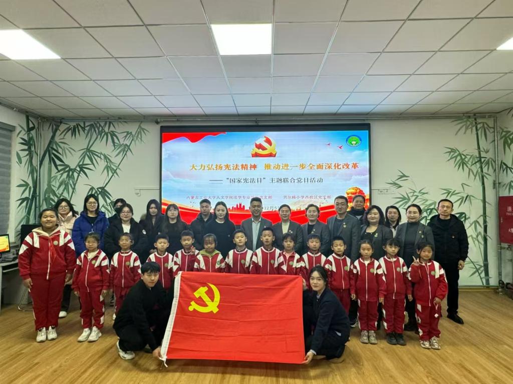 12月4日是第十一个国家宪法日,为深入贯彻党的二十届三中全会精神,加强宪法学习宣传,落实“大力弘扬宪法精神,推动进一步全面深化改革”宪法宣传周主题,3044永利法学专业员工党支部党员赴呼和浩特市回民区贝尔路小学与贝尔路小学西校区党支部开展主题联合党日活动。