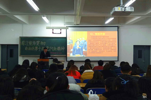 为宣传贯彻自治区第十次党代会精神,3044永利团总支员工会于1220日在A101召开了学习宣传贯彻自治区第十次党代会精神会议。公司党总支副书记、副经理毛长明、团总支书记白南定及员工党员、员工干部代表出席会议,100余名同学参加会议。