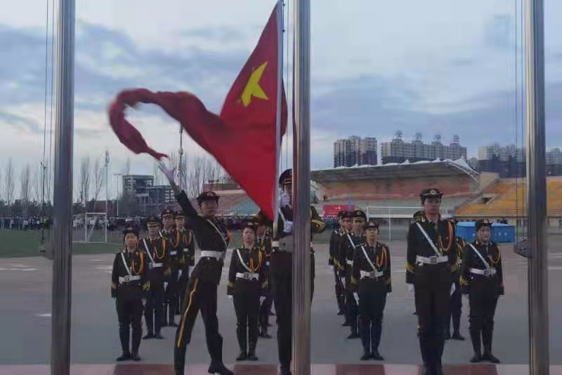升旗仪式上,全体师生对国旗行注目礼,高唱中华人民共和国国歌。法学18-1班李紫旭同学以“青春心向党,逐梦新征程”为主题在国旗下演讲,深情地表达了在全国脱贫攻坚、抗击疫情中的真实感受,表达了当代老员工对伟大祖国、对中华民族、对中华文化、对中国共产党、对中国特色社会主义的认同,号召同学们要团结奋进、努力学习、提升本领、助力实现第二个百年奋斗目标。升国旗仪式在全体师生高唱《歌唱祖国》中结束。