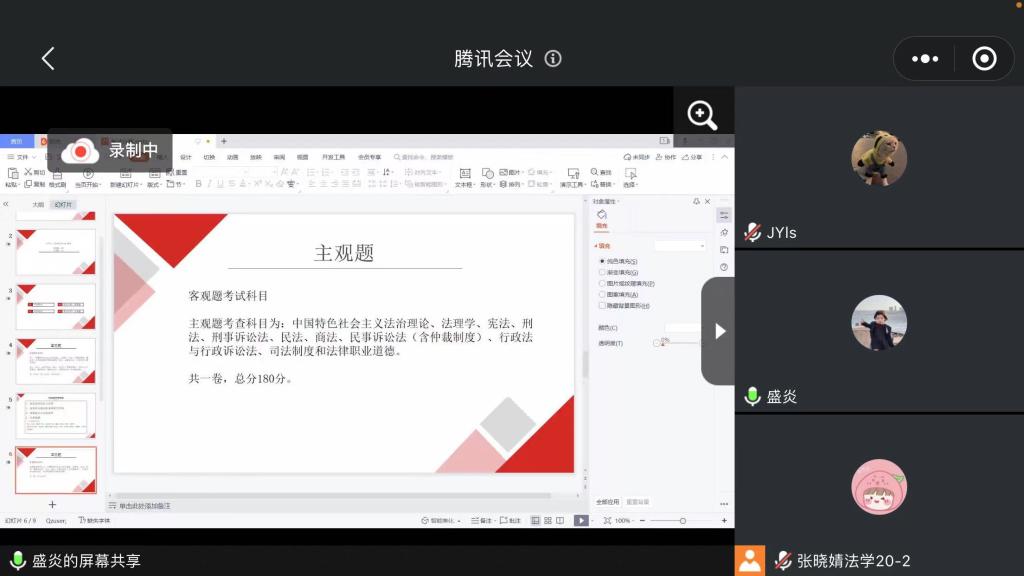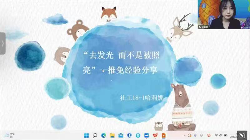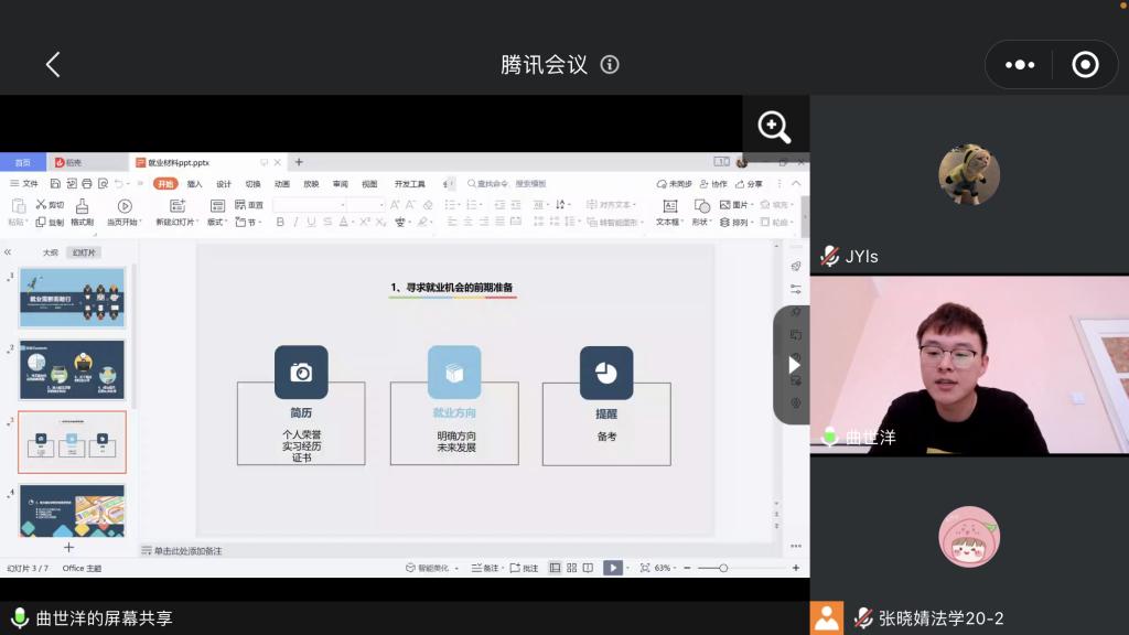 此次经验交流会受邀员工为公司社工18-1班曲世洋、社工18-3班乌日塔、法学18-1班孟燕、社工18-1班哈莉娜、法学18-2班盛炎、法学18-1班白若冰六位优秀毕业生。他们依次分享了自己在求职就业、自主创业、考研、保研、以及法考过程中的心得与经验,回答了在线同学们的疑问。