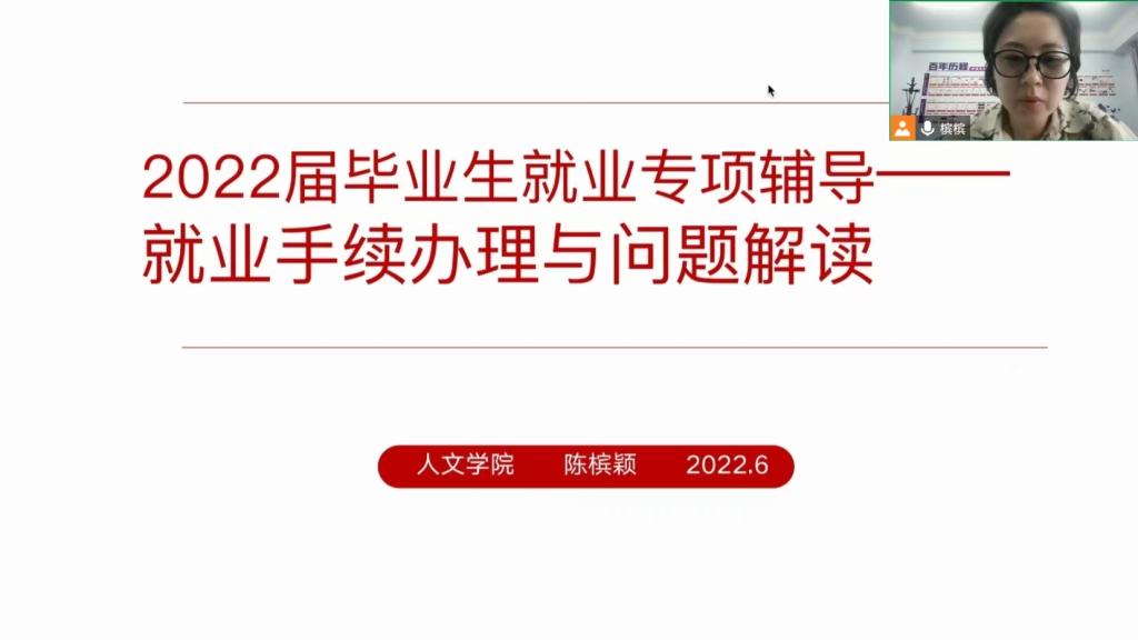 6月22日下午,公司线上举办2022届毕业生就业专项辅导——就业手续办理与毕业生就业问题解读的讲座。公司就业指导老师陈槟颖主讲,2022届部分毕业生参加。