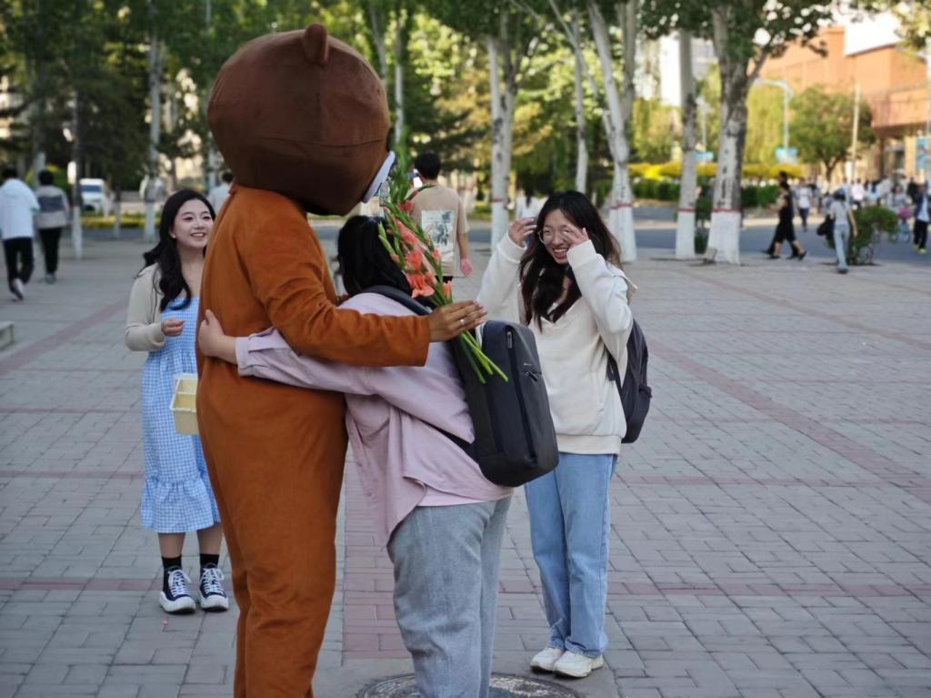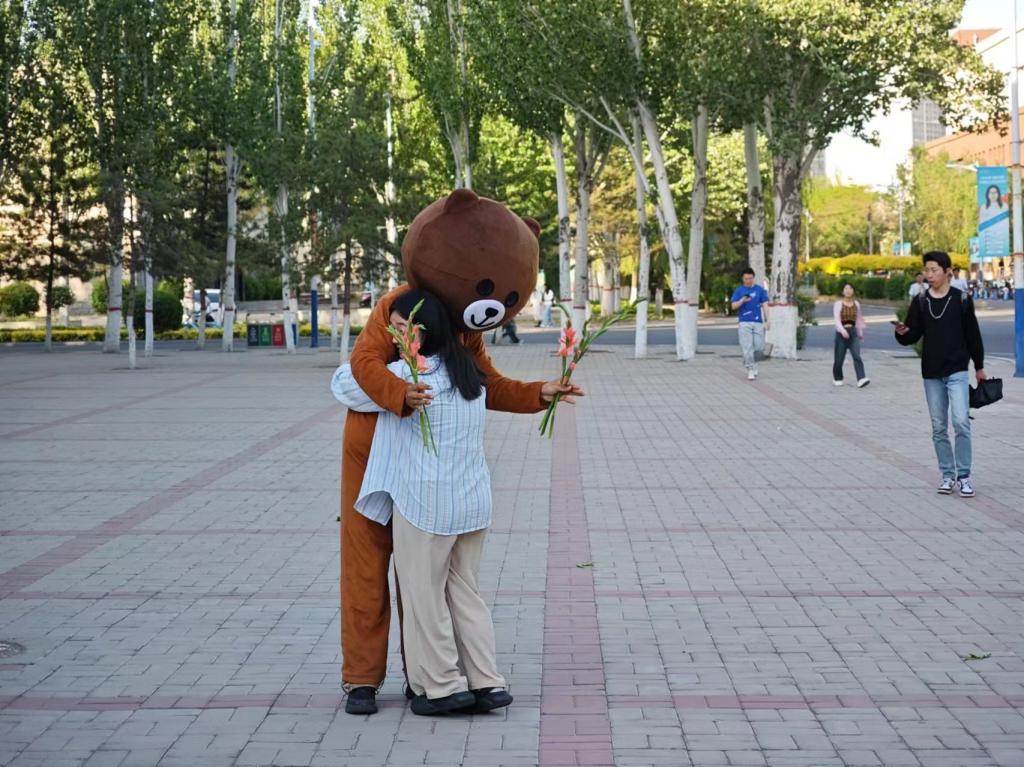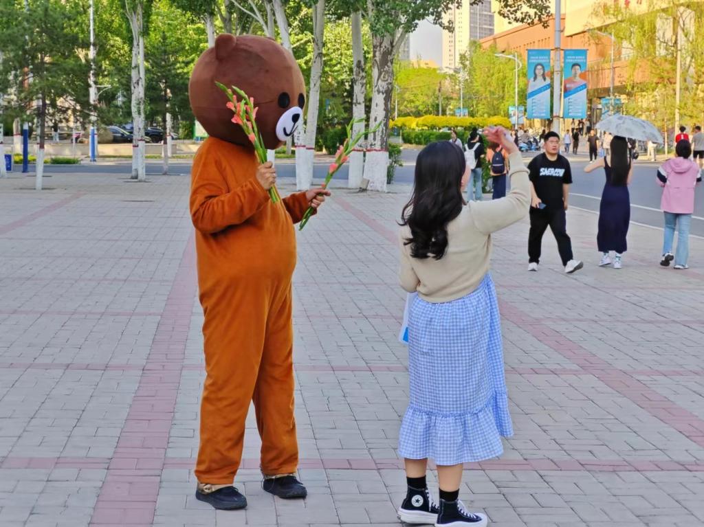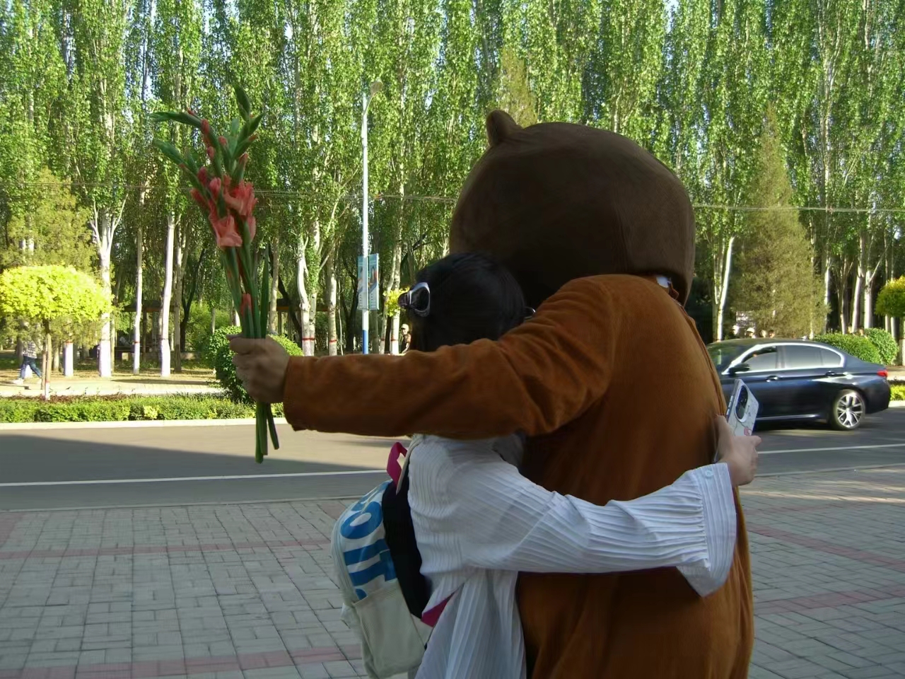 活动现场,志愿者身着小熊玩偶服饰,在朴园餐厅附近热情邀请过往员工参与互动并送出温暖的抱抱。每位参与者都分享了自己的感受,体会到了来自陌生人的善意与温暖。同学们广泛参与,与小熊进行拥抱、握手、合影等,脸上洋溢着快乐微笑。活动结束后,志愿者们还为参与者赠送了小礼和鲜花,以表达对他们的感谢和祝福。此次活动让同学们感受到了爱与温暖,传递了拒绝冷漠、关爱彼此的正能量,为广老员工提供了更多的心理支持和帮助